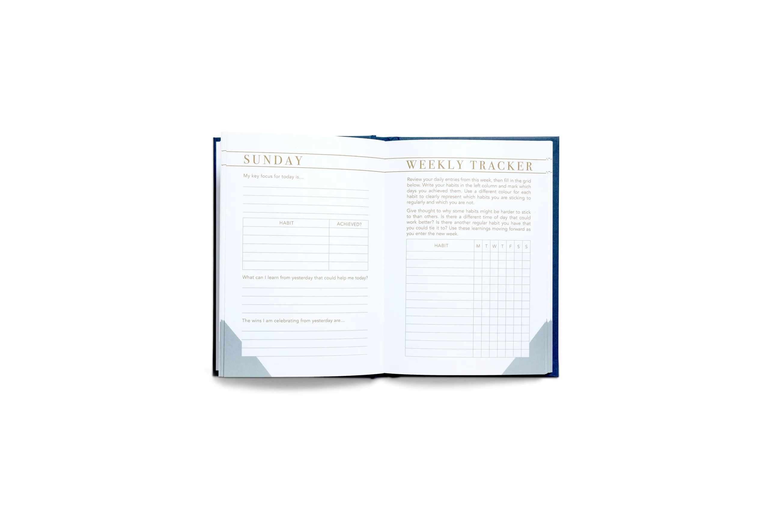 Monday – Sunday daily and weekly habit trackers and guided prompts