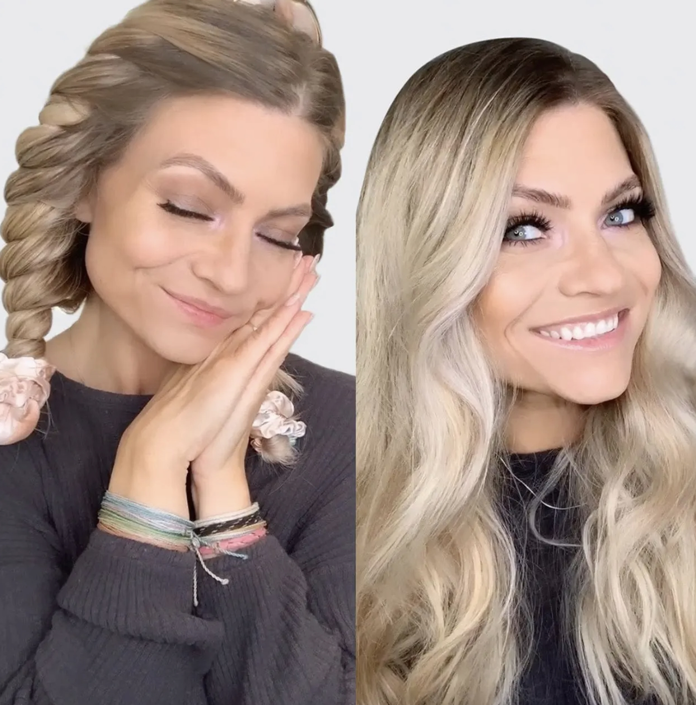 All you need is 5 minutes for really gorgeous curls. Just roll your strands around the satin curling rod and secure with scrunchies. It’ll stay put while you’re getting ready for the day. It’s also comfortable enough to sleep with.
