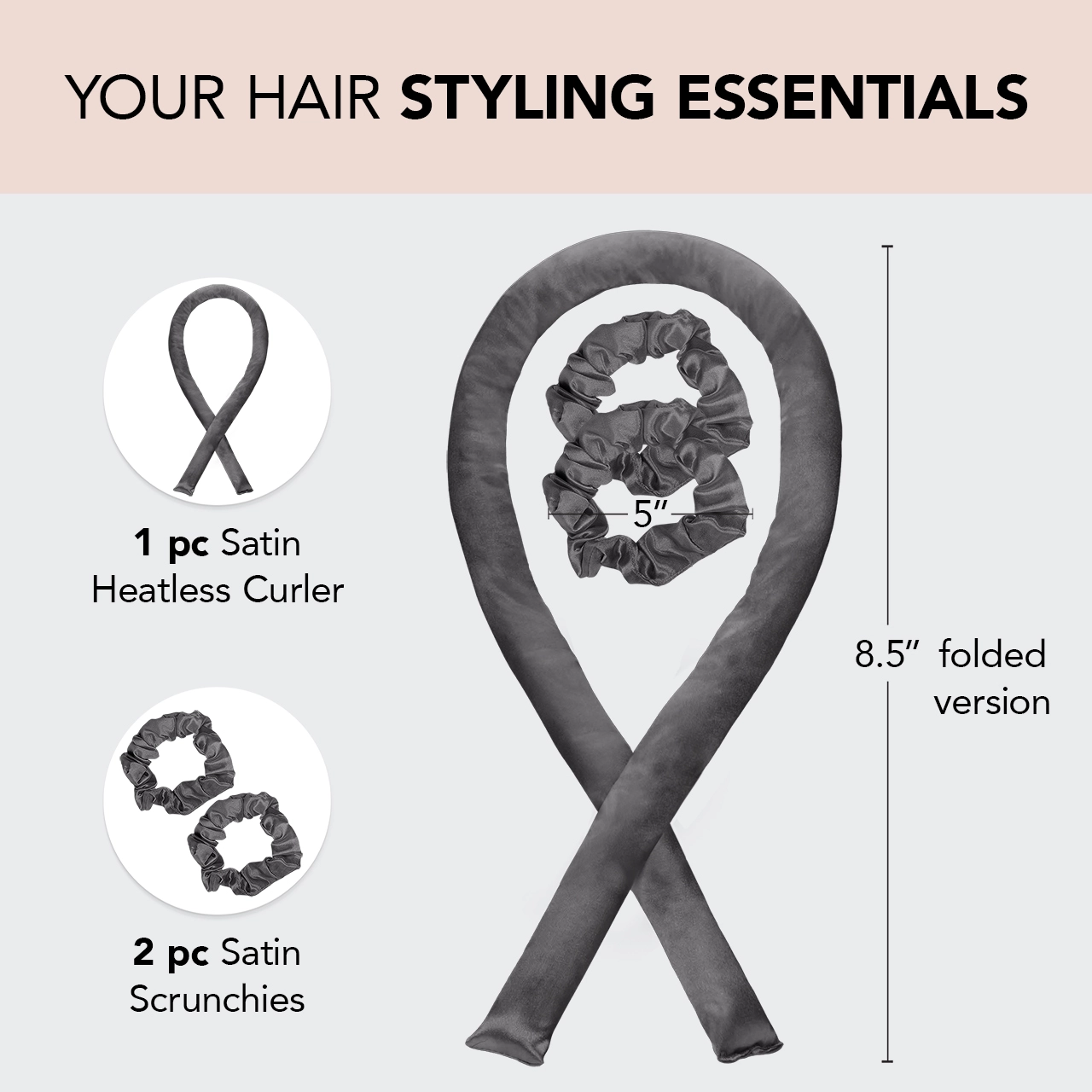 Satin Heatless Curling Set – Charcoal