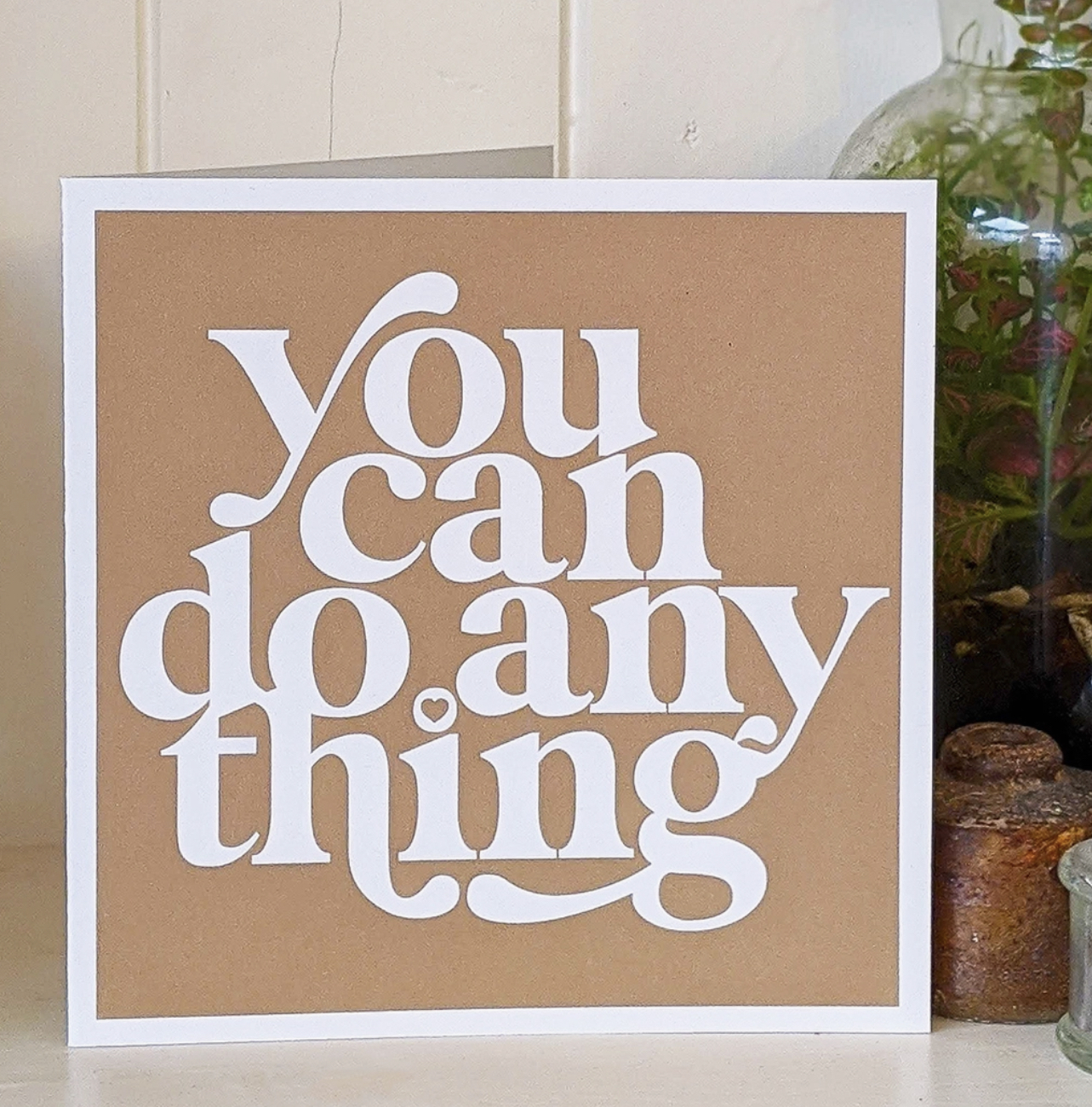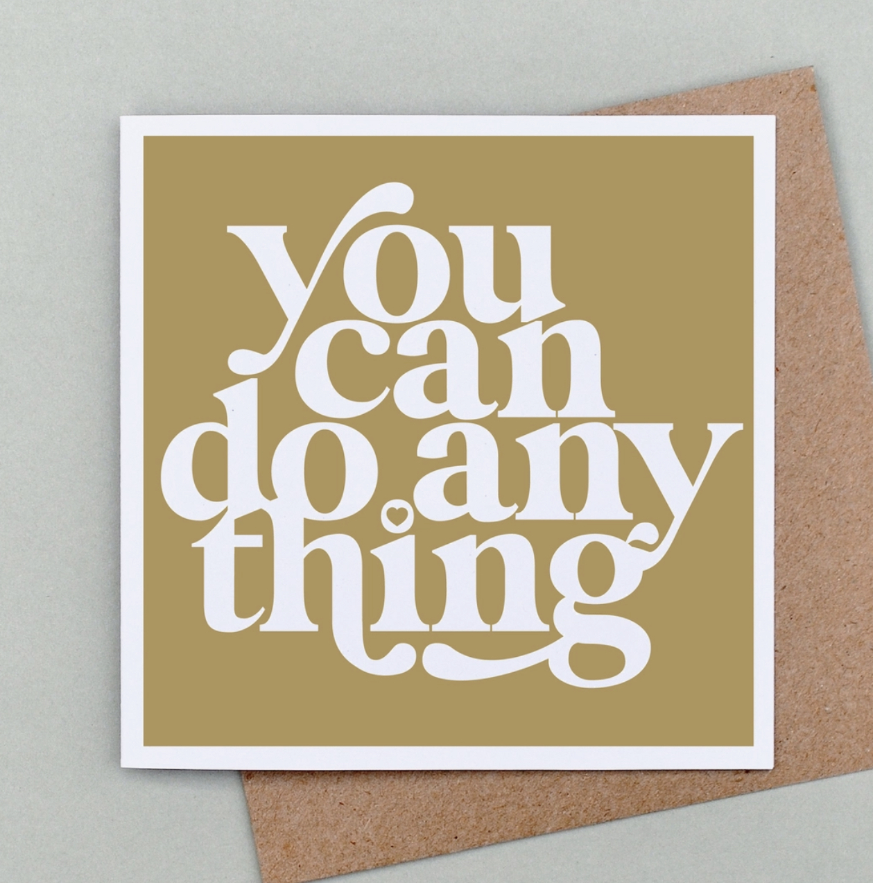 You can do anything. A beautifully simple typographical design with a strong message of positivity. Our cards are made using recycled card stock, 300 gsm. Cards come complete with a recycled kraft envelope, individually wrapped in a cello bag.